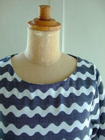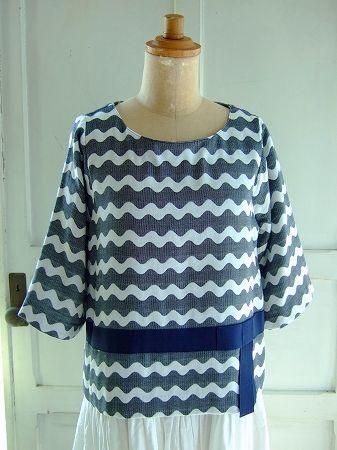 color ネイビー×オフホワイト、素材 cotton100%、made in China、size 38、着丈53cm、バスト94cm、袖丈38cm、肩幅38cm
