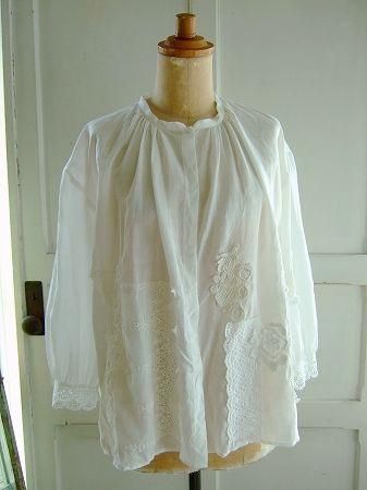 color オフホワイト、素材 Linen100%、made in Japan、size F、着丈64cm、バスト130cm、袖丈52cm(切替しより41cm)、肩幅38cm、※フロント部分はスナップボタンで留まっております。