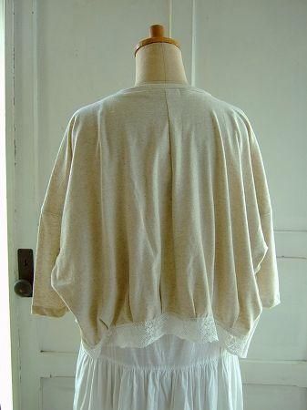 color ベージュ、アイボリー、ナチュラル、オフホワイト、素材 コットン70%、リネン30%、(レース コットン、ナイロン)、made in Japan、size F、着丈48cm、バスト フリー、袖丈50cm(切替しより22cm)、肩幅38cm、※フロント部分はスナップボタンは付いております。ドルマンスリーブのデザインとなっております。