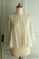 color ベージュ、アイボリー、オフホワイト、素材 コットン100%、(レース コットン、ナイロン / 別布 キュプラ)、made in Japan、size F、着丈80cm、バスト140cm、袖丈12cm、肩幅38cm、※裏地は付いておりません。
