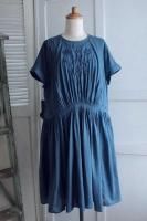 color ネイビー、イエローベージュ、素材 コットン55%、レクセル45%、(アンダードレス コットン100%)、made in China、size 38、着丈93cm、バスト90cm、袖丈18cm、肩幅38cm、※左サイドファスナー。セパレートタイプのアンダードレス付きです。