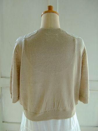 color ベージュ、オフホワイト、素材 Linen100%、made in China、size 38、着丈49cm、バスト100cm、袖丈36cm(切替しより33cm)、肩幅38cm