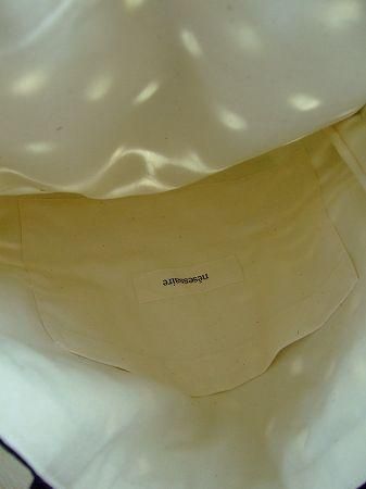 color ブラック、アイボリー、素材 (表地 上)cotton100%、(表地 下)ポリエステル100%、made in Japan、size  39×32cm、(持つ手)56cm、※コットンとシフォン生地を重ねてリボンモチーフのステッチを施したものに特殊な薬品で表地のコットンのみを溶かしドットやボーダーの柄を出すオパール加工という手法が施されています。