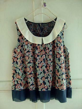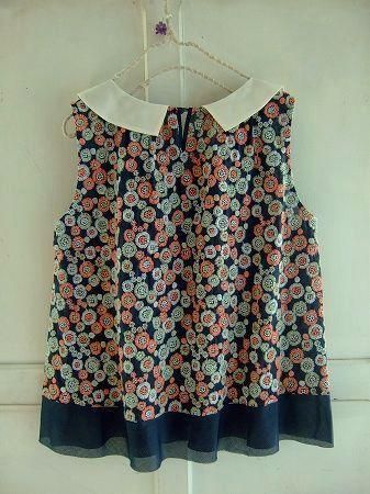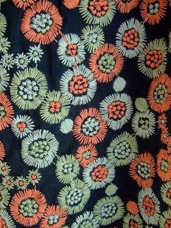 color ネイビー、オフホワイト、(刺繍糸 ブルー、オレンジ、グリーン)、素材 cotton100%、(刺繍糸 cotton100%、襟部分 cotton75%、silk25%、裾部分 cotton100%)、made in Japan、size F、着丈58cm、バスト106cm、肩幅38cm、※裏地は付いておりません。