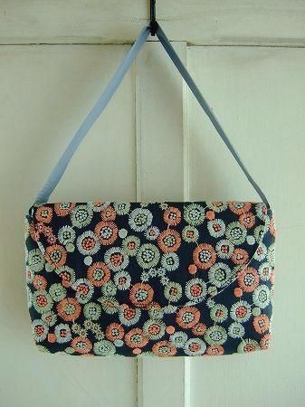 color ネイビー、オフホワイト、(刺繍糸 ブルー、オレンジ、グリーン)、素材 cotton100%、(刺繍糸 cotton100%、裏地 ポリエステル100%)、made in Japan、size 17×25cm、(まち)4cm、(持ち手)51cm、※マグネットボタンが1つ付いています。