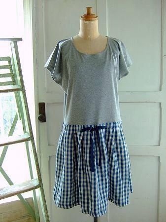color グレー、(スカート部分)アイボリー×ブルー、素材 cotton100%、(スカート部分 Linen100%)、size 38、着丈94m、(トップ46cm)、バスト104cm、袖丈15cm、肩幅38cm、※裏地は付いておりません。