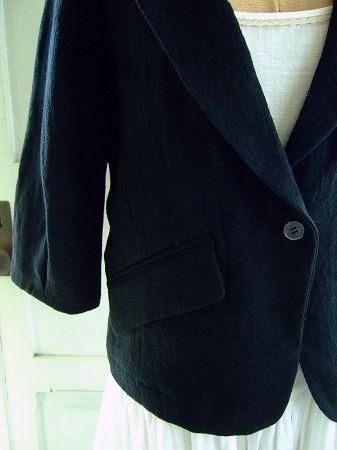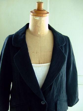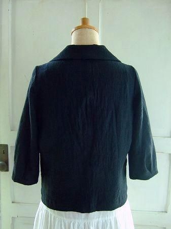color ブラック、素材 Linen100%、made in Japan、size 38、着丈52cm、バスト96cm、袖丈41cm、肩幅38cm、※裏地は付いておりません。