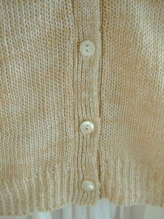 color ベージュ×アイボリー(ミックス)、素材 Linen100%、(別布 ポリエステル100%)、made in China、size 38、着丈60cm、バスト98cm、袖丈53cm、肩幅38cm、※背中部分はシフォン生地の切替え(裏地なし)となっております。