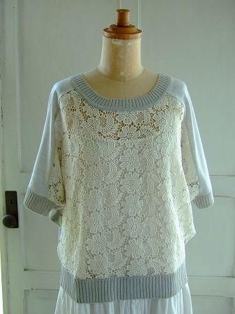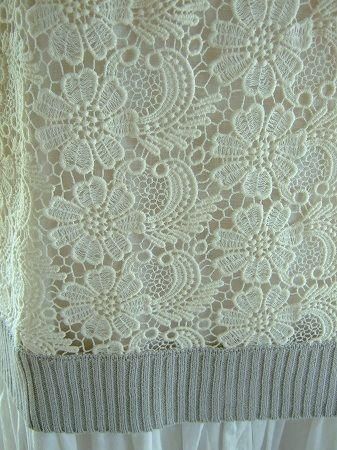 color グレー、アイボリー、素材 レーヨン51%、コットン28%、リネン17%、ナイロン4%、(レース部分) コットン100%、made in China 、size M、着丈55cm、バスト148cm、袖丈32cm、肩幅38cm、※裏地は付いておりません。