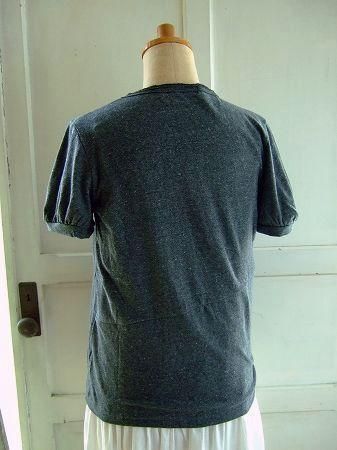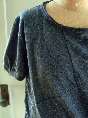 color チャコール、素材 cotton100%、made in Japan、size F、着丈59cm、バスト98cm、袖丈20cm、肩幅38cm、※首周りは切りっぱなしのデザインとなっております。