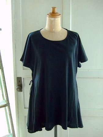 color ブラック、素材 オーガニックコットン100%、(別布 ポリエステル100%)、made in Japan、size 38、着丈67m、バスト108cm、袖丈20cm、肩幅38cm、※裏地は付いておりません。