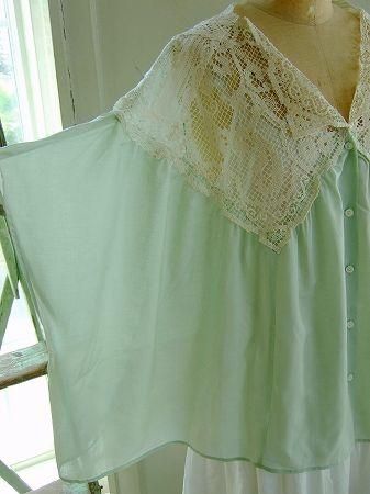 color ミント、(レース)アイボリー、素材 cotton100%、made in Japan、size F、着丈52〜59cm、バスト フリー、袖丈34cm、肩幅38cm、※裏地は付いておりません。