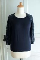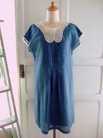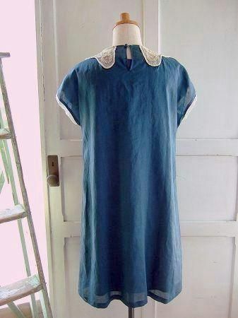 color ナイトブルー、アイボリー、素材 リネン100%、(チュール部分) ナイロン100%、(別地) コットン100%、(裏地) アセテート100%、made in China、size F、着丈92cm、バスト98cm、袖丈13cm、肩幅38cm、※セパレートタイプのアンダードレス付きです。