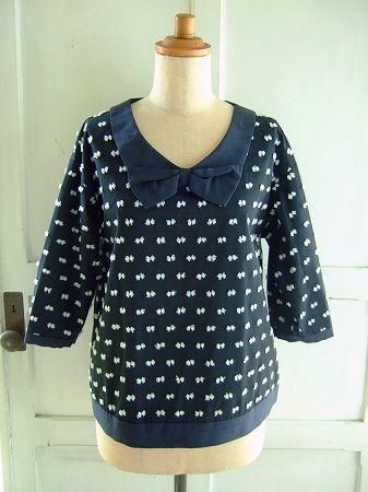 再入荷!haupiaリボンドットジャガードブラウスNV