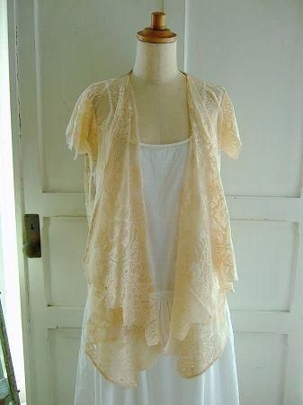 color ベージュ、(レース) ベージュ(オレンジがかったお色です)、素材 (ニット部分) テンセル50%、アクリル40%、アンゴラ10%、(レース部分) コットン60%、ナイロン40%、made in China、size 38、着丈56cm、バスト フリー、袖丈18cm、肩幅38cm、※フロントレースの裾部分にボタンホール・肩にボタンが付いておりいろいろな着方が楽しめます。ボタンを留めずにレースをおろして。片側だけボタンを留めて。両側のボタンを留めて。