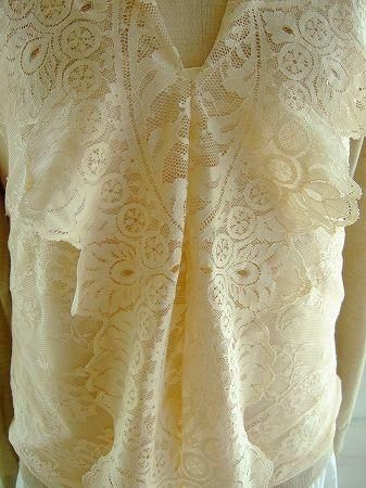 color ベージュ、(レース) ベージュ(オレンジがかったお色です)、素材 (ニット部分) テンセル50%、アクリル40%、アンゴラ10%、(裏地)ポリエステル100%、(レース部分) コットン60%、ナイロン40%、made in China、size 38、着丈63cm、バスト92cm、袖丈62cm、肩幅38cm、※フロントのレース部分にのみシフォン素材の裏地が付いております。
