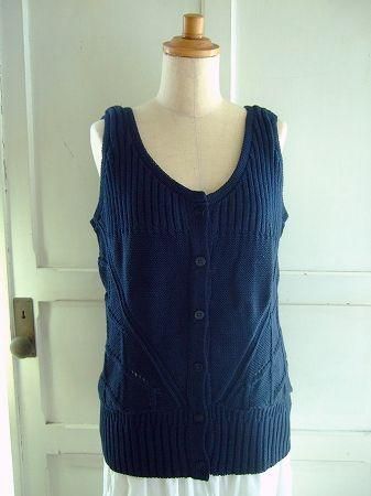 color ネイビー、素材 cotton70%、Linen30%、made in Japan、size M、着丈67cm、バスト94cm、肩幅38cm
