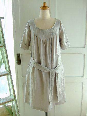 color グレー、素材 Linen100%、size 38、着丈91m、バスト102cm、袖丈30cm、肩幅38cm、※裏地は付いておりません。レースはベルトに縫い留まっておりません。