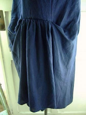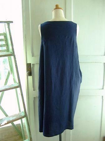 color ネイビー、素材 Linen100%、made in Japan、size 38、着丈100cm、バスト95cm、肩幅38cm、※裏地は付いておりません。