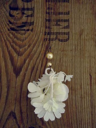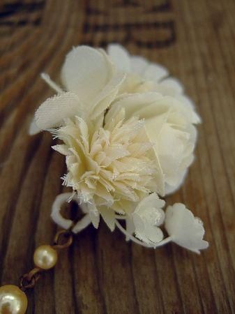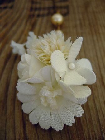 color オフホワイト、素材 真鍮、コットンなど、made in JAPAN、size (フラワー部分)4×3.5cm、(全長)10.5cm、※こちらは片耳ピアスとなります。