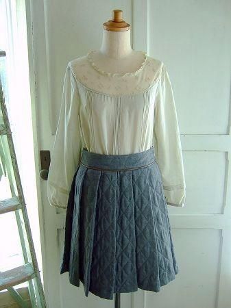 color グレー、素材 cotton100、(中わた)ポリエステル100%、(裏側)ポリエステル100%、made in China、size 38、着丈54cm、ウエスト68cm、ヒップ100cm、※裏地は付いておりません。