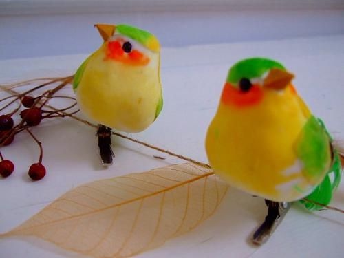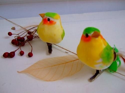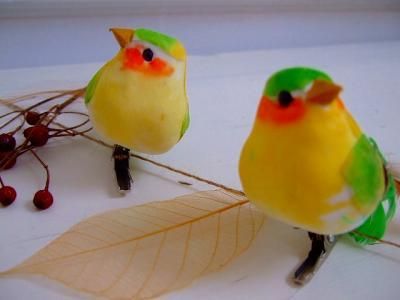 カラー グリーン、イエロー、 素材  発砲スチロール、リアル羽根、 買い付け国 フランス、足元にクリップが付いています