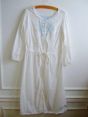 カラー ホワイト、ブルー、 素材 コットン100%、 裏地は付いておりません。 サイズ 着丈109cm、バスト 90cm、 ウエスト 80cm、ヒップ 115cm、袖丈 52cm、 肩幅 37cm、