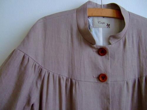 カラー グレー、ベージュ、 素材 コットン リネン 100%、 (プリント裏地コットン 100%、袖裏地 ポリエステル 100%)、 サイズ  着丈 90cm、バスト 105cm、 ウエスト105cm、 ヒップ 115cm、肩幅 39cm、袖丈 44cm