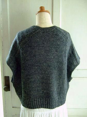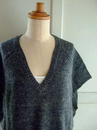 color チャコール、素材 ウール60%、リネン20%、アクリル12%、アルパカ8%、made in China、size 2、着丈48cm、バスト116cm、袖丈20cm、肩幅38cm、数色の糸がミックスして織り上げられています。