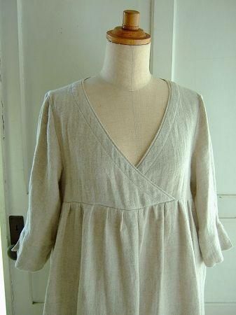 color エクリュ、素材 Linen100%、made in Japan、size 38、着丈98cm、バスト92cm、袖丈40cm、肩幅38cm、※裏地は付いておりません。起毛がかったリネン素材となります。