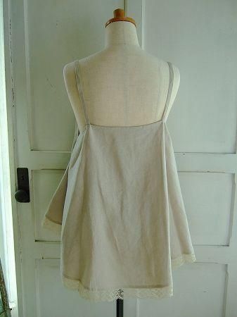 color アイボリー、素材 Linen100%、made in China、size F、着丈72cm、(肩ひも含みます)、バスト フリー、肩幅38cm、※裏地は付いておりません。