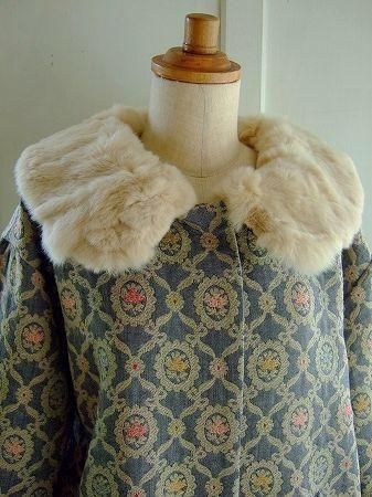 color ネイビー、素材 リネン62%、アクリル35%、ナイロン3%、(裏地)ポリエステル100%、(ファー)レッキス、made in Japan、size F、着丈85cm、バスト125cm、袖丈45cm(切替しより39cm)、肩幅38cm、※ファーの襟はボタンで留まっております為、取り外し可能です。フロントは大きめのスナップボタン4つで留めて頂くデザインとなっております。