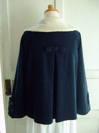 color ネイビー、アイボリー、素材 ウール72%、ポリエステル12%、ナイロン7%、リネン6%、アクリル3%、(ボア部分)アクリル100%、(裏地)ポリエステル100%、made in China、size 38、着丈61cm、バスト100cm、袖丈57cm(袖口周り40cm)、肩幅38cm、※モコモコ襟は取り外し不可となります。