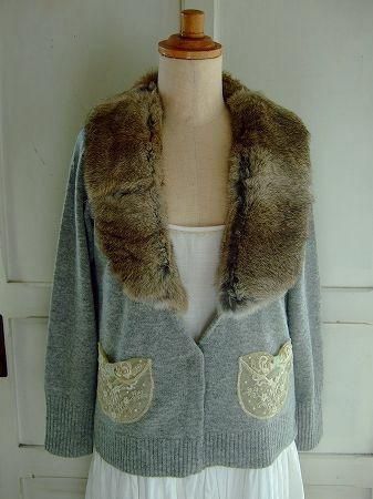 nesessaire Suzetteのファー付け襟カーディガンGY