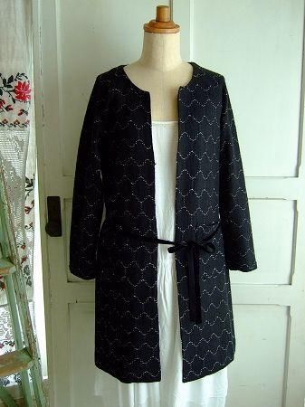 color ブラック、アイボリー、素材 ウール89%、アクリル11%、made in China、size 38、着丈83cm、バスト94cm、袖丈58cm、肩幅38cm、※裏地は付いておりません。フロント部分は鍵ホック3つで留めて頂くデザインとなっております。