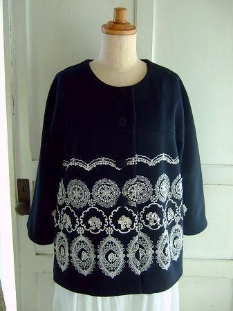 nesessaire レース柄インケミカル刺繍ショートコートNV