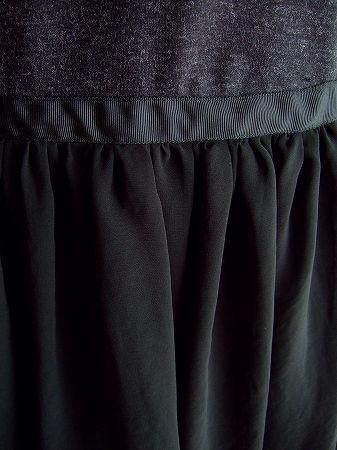 color チャコール(ミックス)、(スカート部分)ブラック、素材 アクリル82%、ナイロン10%、ウール7%、ポリウレタン1%、(布帛)ポリエステル100%、(裏地)ポリエステル100%、size 38、着丈93m、(トップ42cm)、バスト90cm、袖丈46cm、肩幅38cm、※裏地はスカート部分のみとなります。トップには付いておりません。