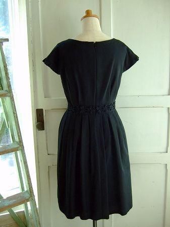 color ブラック、素材 コットン55%、シルク45%、(裏地 ポリエステル100%、ウエスト部分飾り ポリエステル100%)、made in China、size 38、着丈92cm、バスト85cm、袖丈11cm、肩幅38cm