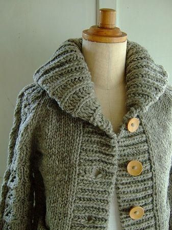 color ライトグレー、素材 ウール100%、made in Peru、size 着丈54cm、バスト84cm、袖丈59cm、肩幅38cm、※手編みの為、多少のサイズの誤差が生じる場合がございます。予めご了承下さいませ。