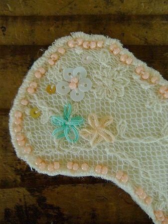 color アイボリー、ピンク、ミント、素材 ウール、ナイロンなど、made in China、size 3〜4.5×8cm、※ハンドメイドの為、多少のサイズの誤差が生じる場合がございます。予めご了承下さいませ。