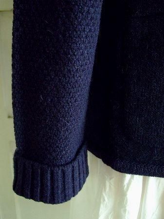 color ネイビー、素材 (身頃部分)ウール50%、ポリエステル50%、(袖部分)ウール80%、ナイロン20%、made in China、size M、着丈62cm、バスト94cm、袖丈60cm、肩幅38cm、※裏地は付いておりません。