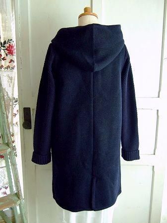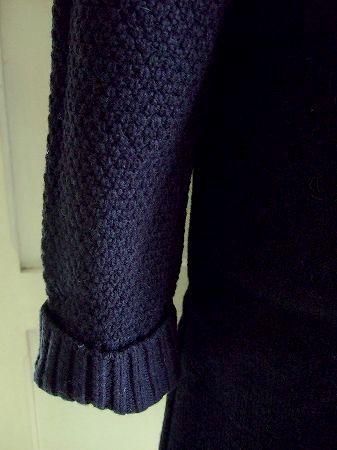 color ネイビー、素材 (身頃部分)ウール50%、ポリエステル50%、(袖部分)ウール80%、ナイロン20%、(別布部分)ポリエステル80%、ポリウレタン20%、made in China、size M、着丈86cm、バスト98cm、袖丈61cm、肩幅38cm、※裏地は付いておりません。