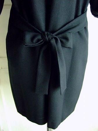 color ブラック、素材 ウール100%、(裏地) ポリエステル100%、made in Japan 、size 38、着丈90cm、バスト94cm、袖丈38cm、肩幅38cm、※リボンはフロント部分が一部縫い留まっております。