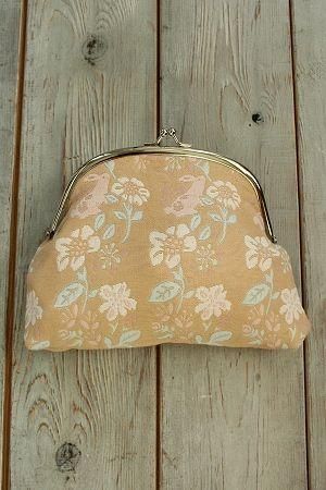 color ベージュ(サーモンピンクに近いお色です)、素材 コットン66%、キュプラ34%、made in China、size 14×19cm、※中生地には水玉のコットン生地が施されています。