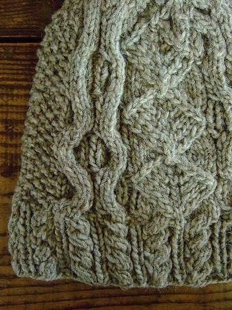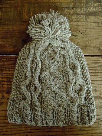 【made in Peru】ケーブル編みボンボンニット帽LGY