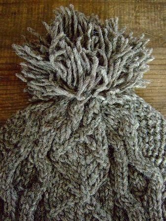 【made in Peru】ケーブル編みボンボンニット帽GY