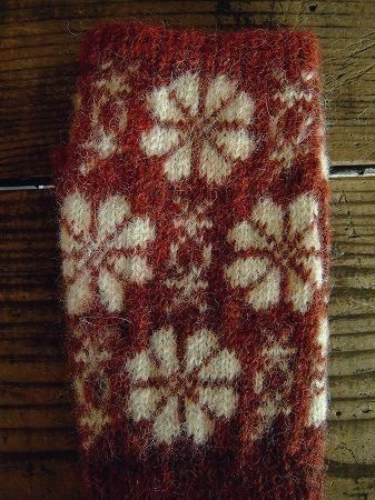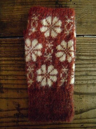 color レッド×オフホワイト、素材 wool100%、made in Sweden、size 全長22cm、※グラデーションの糸を使用し編み上げられております為、場所によってお色が異なります。予めご了承下さいませ。