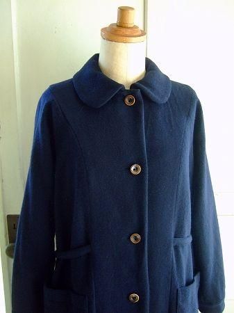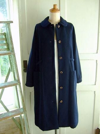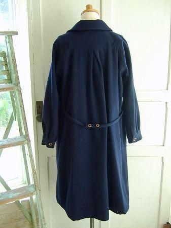 color ネイビー、素材 ウール80%、ポリエステル10%、アクリル5%、ナイロン5%、(別布)コットン90%、リネン10%、(裏地)キュプラ100%、made in Japan、size 38、着丈102cm、バスト105cm、袖丈59cm、肩幅38cm