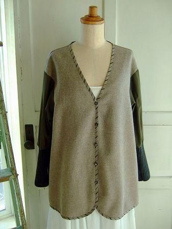 (ライナー) 素材 ウール70%、ポリエステル25%、ナイロン3%、アクリル2%、(別布)コットン、キュプラ、(リブ部分)アクリル70%、ウール30%、size F、着丈72cm、バスト114cm、袖丈62cm(切替しより50cm、リブ19cm)、肩幅38cm