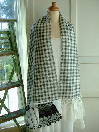 color オフホワイト×ブラック(グレー)、素材 ウール50%、ポリエステル50%、リネン、コットンなど、made in China、size 幅58cm×長さ202cm